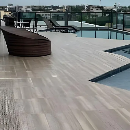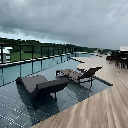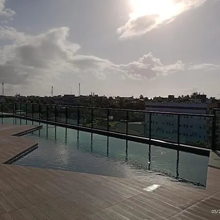 Flat Porto De Galinhas Villas Do Porto Marはポルト デ ガリーニャス天然プールから徒歩で18分の場所に位置し、プールを提供しており、リラックスした滞在を楽しむことができます。